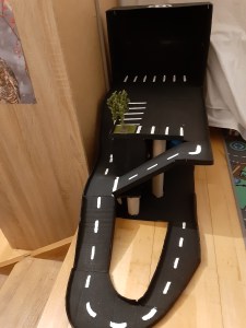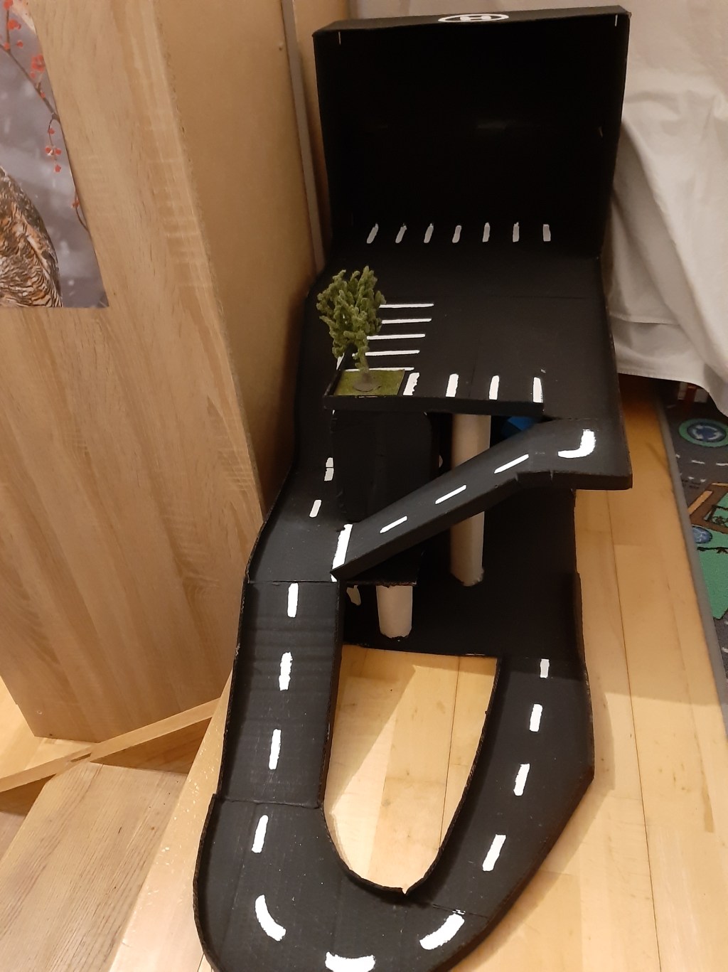 „Na dann bauen wir dir halt eins“, sprach die Mama und baute mit ihrem Sohn in einem 4 Tages Projekt ein Parkhaus inkl. Straßenschilder, Waschanlage und Zapfsäule.