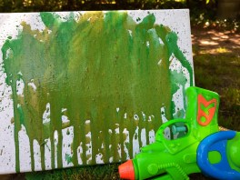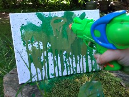 - Und jetzt kann das Malen beginnen: mit der Wasserspritzpistole auf die Leinwand zielen und abdrücken