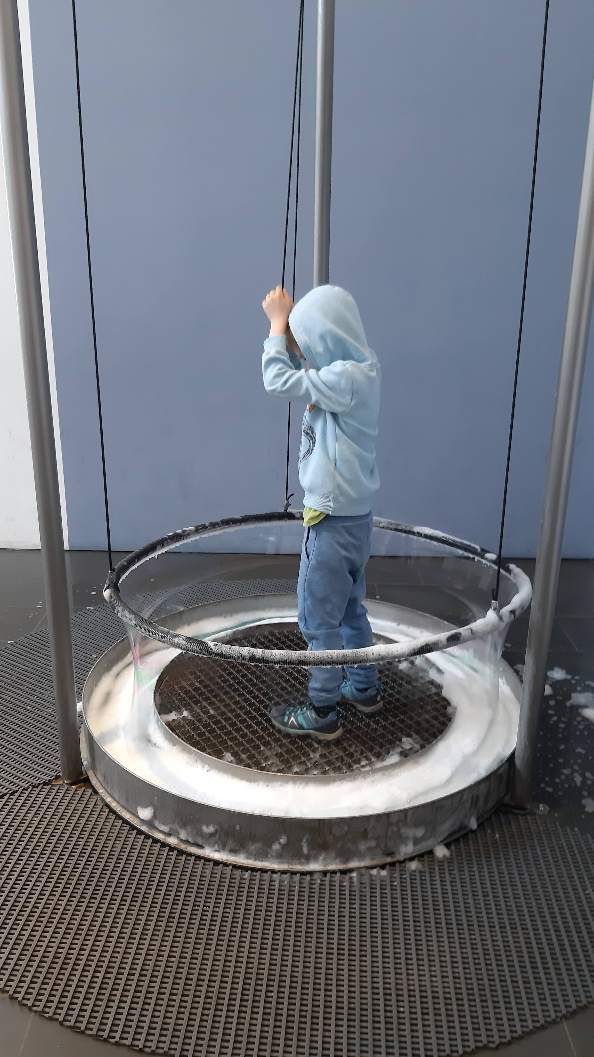 Und wie sollte es in einem Museum voller Experimente weiter gehen? Natürlich mit dem nächsten Experiment: eine Seifenblase nach oben ziehen