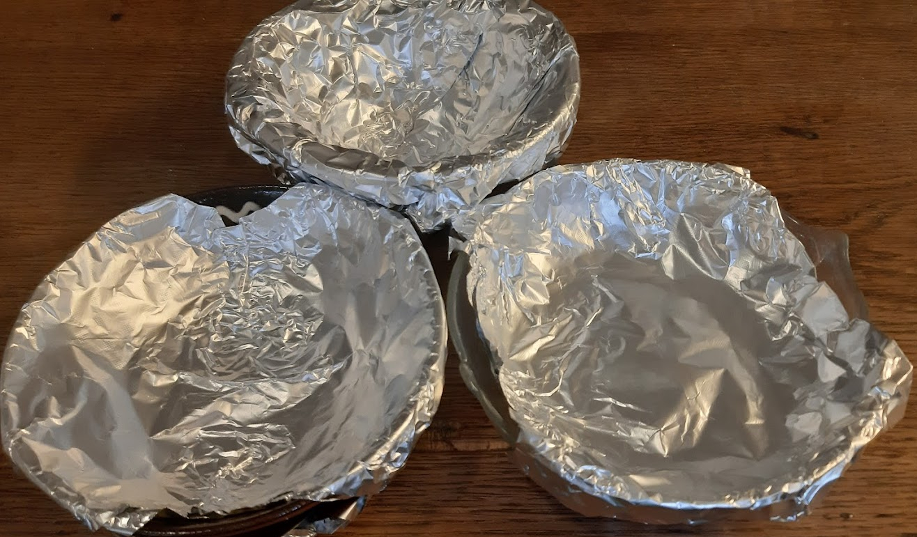 mit Alufolie bedeckte Schüsseln