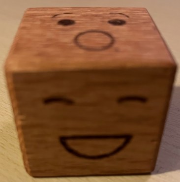 Ein Stück altes Holz + verschiedene Gesichter drauf = der Gefühlswürfel von Alter Sensus