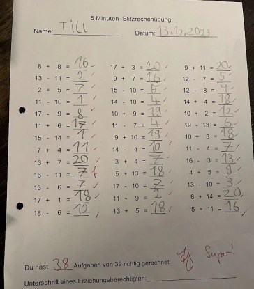auf meinen Sohn: 38 Punkte von 39! YEAH