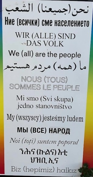Übrigens ziert die Mauer gegenüber ein wichtiges Plakat: