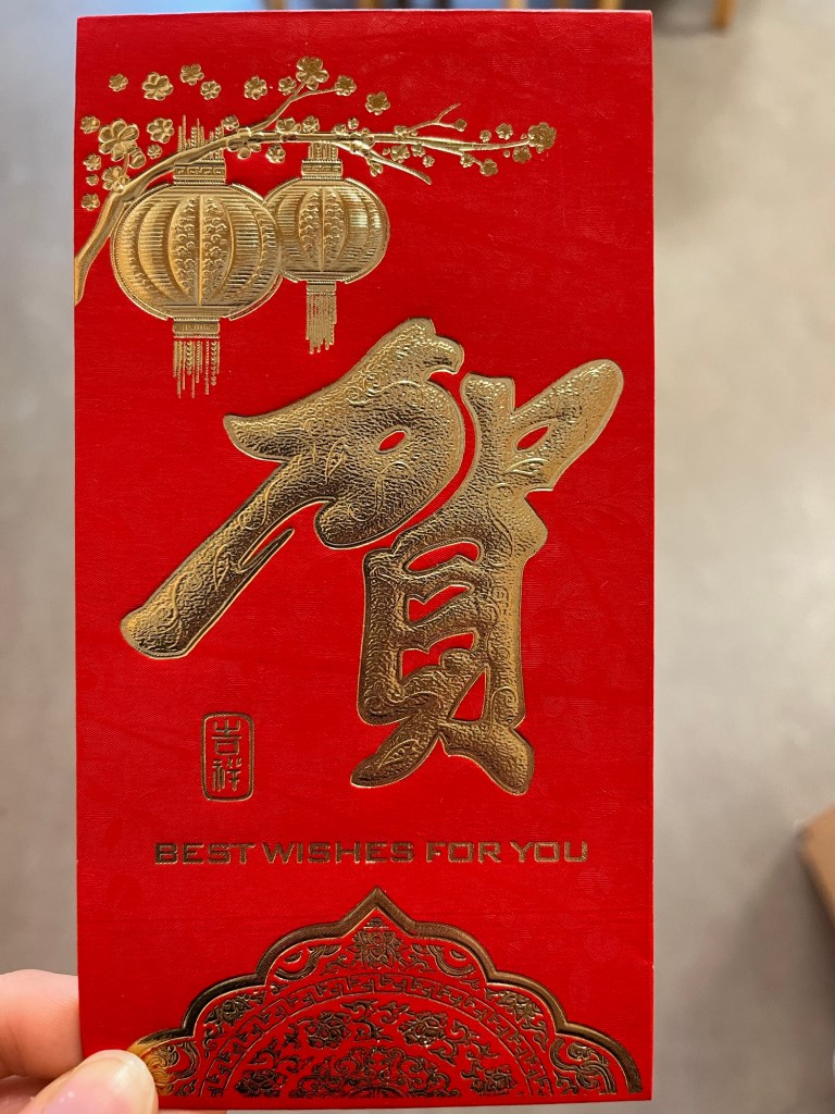 In solch einem Umschlag bekommen die Kinder und älteren Menschen Geld geschenkt.