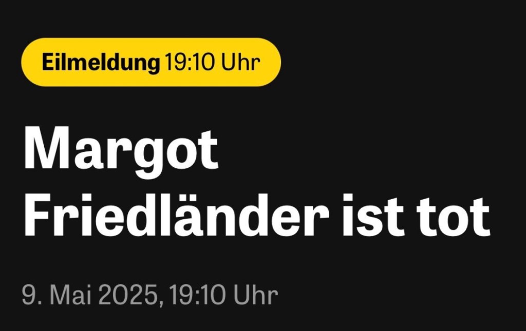 Am 9. Mai 2025 ist Margot Friedländer im Alter von 103 Jahren in Berlin verstorben.