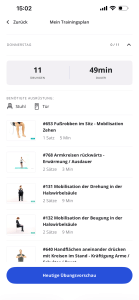 Nach 49 min hatte ich die 11 Übungen dann erledigt.