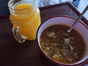 so dass es dann frischen Orangensaft und selbst gekochte Suppe gab.